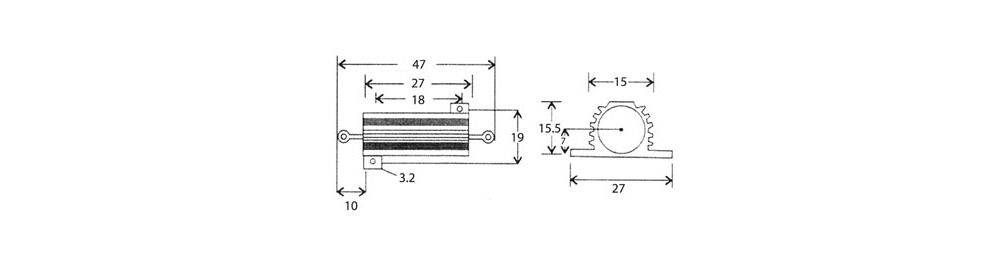 Esses resistores de 25W de fio enrolado conseguem lidar com uma dissipação contínua de alta potência em um tamanho compacto. O resistor é moldado em um dissipador de calor de alumínio anodizado para máxima dissipação de calor.