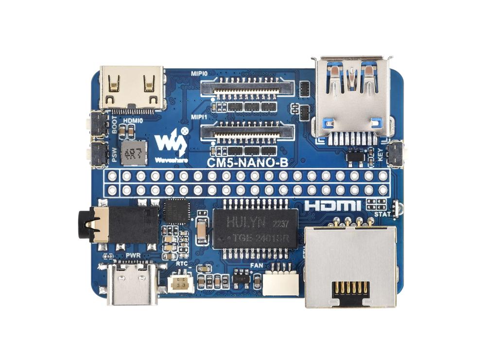 A Nano Base Board (B) oferece uma base compacta e versátil para o Raspberry Pi Compute Module 5. Projetada para combinar com o tamanho do CM5, ela garante uma integração perfeita nos seus projetos.
